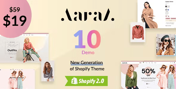 Aara is a fashion Shopify theme for businesses related to fashion, clothing accessories, apparel, attire, boutique, clothes, clothes shop, clothing brands, eCommerce, print on demand, fashion, night wears, nightdresses, party wears, traditional shops, fashion luxury shop, luxury products, luxury fashion brand, online shop, bikini shop, swimwear, beachwear, lingerie, innerwear, streetwear, sportswear, women fashion, women store, women shops, urban clothing, fashion minimal, women fashion, women store, blog, women shop, wedding fashion store, bridal clothing, dropshipping, modern multipurpose fashion store, and more creative apparel sores.