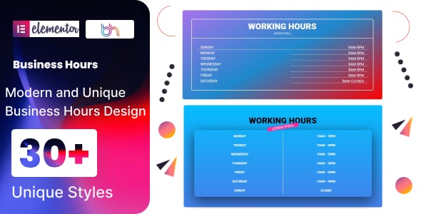 “BWD Business Hours” is a lightweight Elementor base WordPress plugin to add attractive Business Hours to your website without any coding knowledge. There are 30+ unique preset business hours that look awesome. For Kind information, more than 100+ designs will be included very soon.
