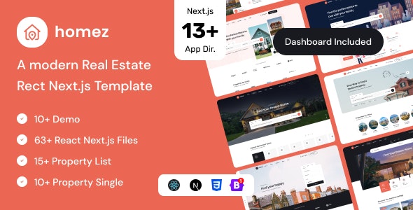 Homez – Real Estate NextJS Template. It’s a High-Quality and well organized Real Estate Nextjs 13 (`app` directory) Template.