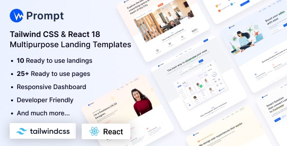 Prompt – Tailwind CSS Multipurpose Landing Templates is a powerful multipurpose landing template based on the Tailwind CSS framework. The prompt is a fully-featured modern multi-purpose template built on top of awesome Tailwind CSS v3.3.2. & React 18 (Typescript) It’s for building responsive, mobile-first landing pages, and websites with Tailwind. The clean and well-commented code allows you to easily customize it. You can simply update its contents, images, and scss according to your company info. The prompt has 10 different types of landings, which are quite enough for your business.