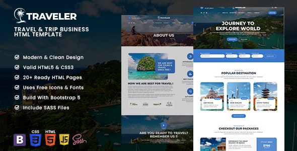 Traveler – Travel & Trip Business Html Template created specially to build such as travel agency, tour, travel website, tour operator, tourism, trip, destinations, adventure and all other travel & tour websites and businesses.