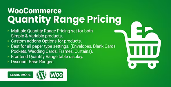 WooCommerce Quantity Range Pricing can make your job so easy to sell your product with dynamic ranges. We build this plugin for those who want to sell Envelopes, Specialty Papers, Blank Cards, Pockets, Wedding Cards, Posh Papers, Pocket Cards, Carpet, Pictures Frames, Windows Curtains and Print Papers, and much more.